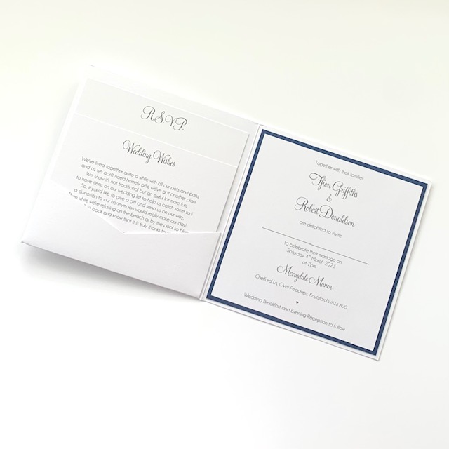Navy and White Pocketfold Wedding Invitation with a Belly Band
